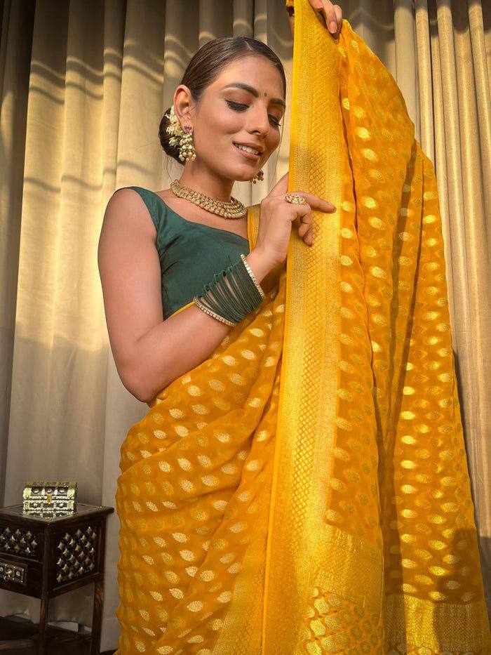 | Name : | KP 5083 YELLOW SOFT LICHI SILK SAREE |