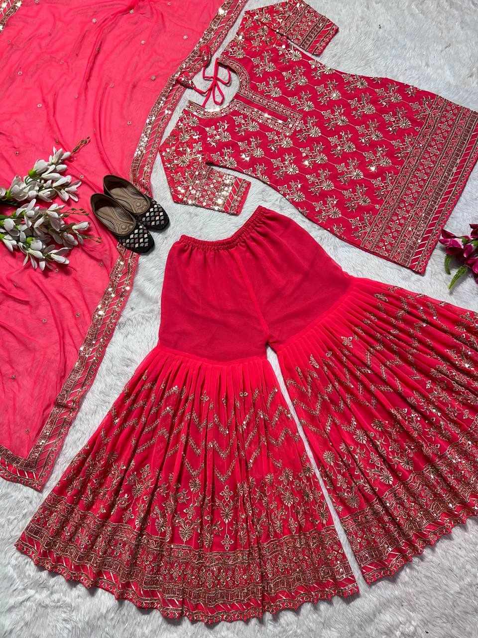 Plazzo Fabrics: Heavy Faux Georgette With 5mm Embroidery Sequence Fully Flair