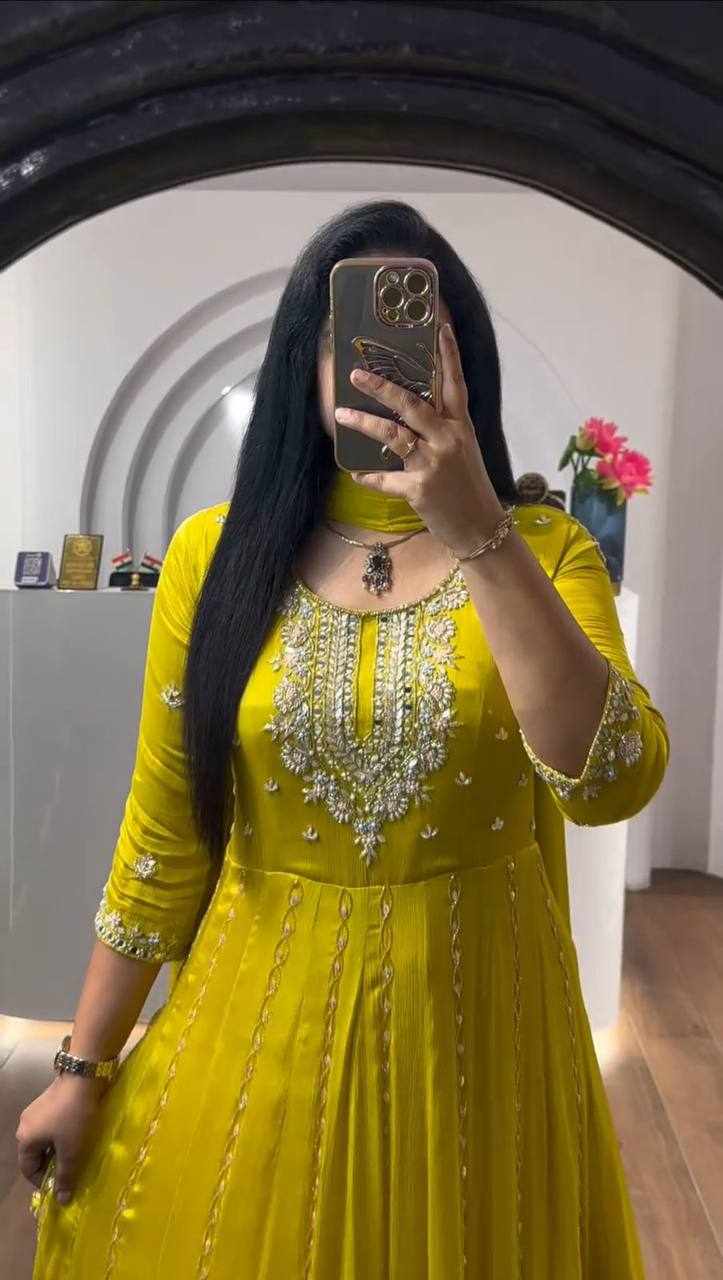 | Name : | Pc 435 Yellow Chinon Embroidery Sequence Gown |